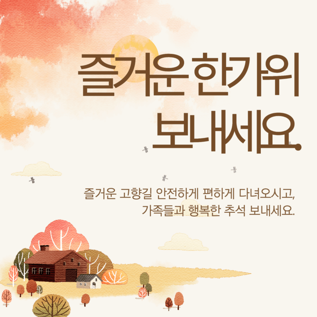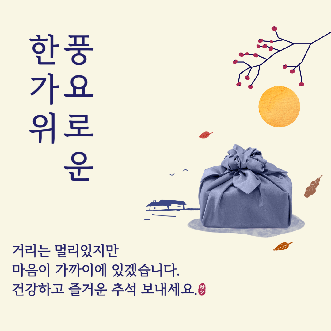 - 즐겁고 건강한 한가위 보내시길 바라며, 안전한 귀성길 되시길 기원합니다.