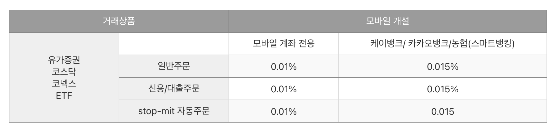 저는 제 상황에서 비교해서 봤을 때 수수료가 가장 저렴했던 NH 투자 증권에서 개설했습니다. 아래는 NH 투자증권의 수수료입니다.